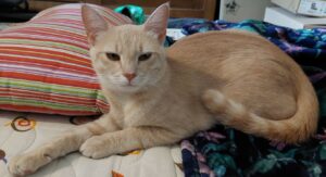 Je suis propre, gourmande, d’un tempérament calme et câline, mais je suis également joueuse, un chat comme on les aime quoi !!!.