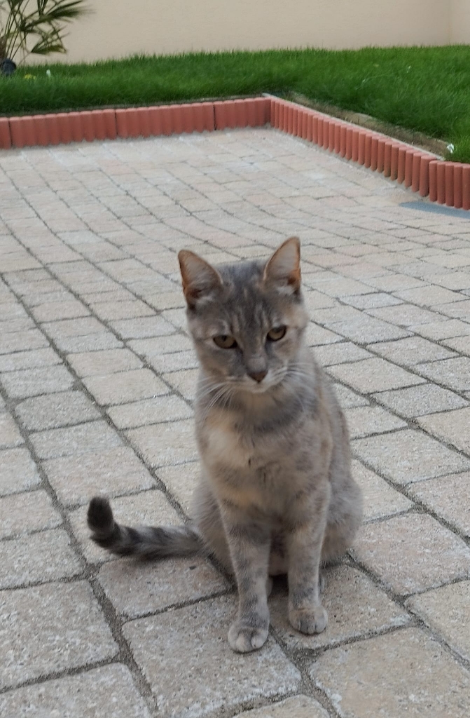 « sniff sniff », surnom donné par la famille d’accueil de la minette, est un amour de chatte de moins de 18 mois. C’est un petit gabarit. Abandonnée, gestante, elle est venue trouver de l’aide chez eux. Elle a eu trois chatons qui sont tous adoptés.