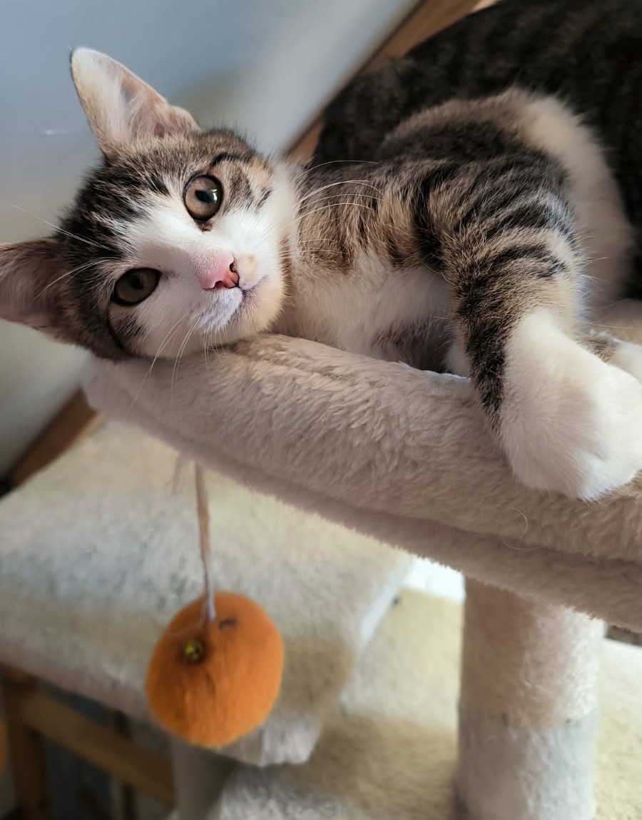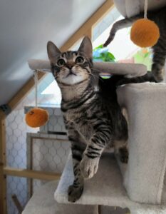 Ambre est une adorable petite minette âgée d’environ 3 mois, coquine et espiègle sociable avec les autres chats.
