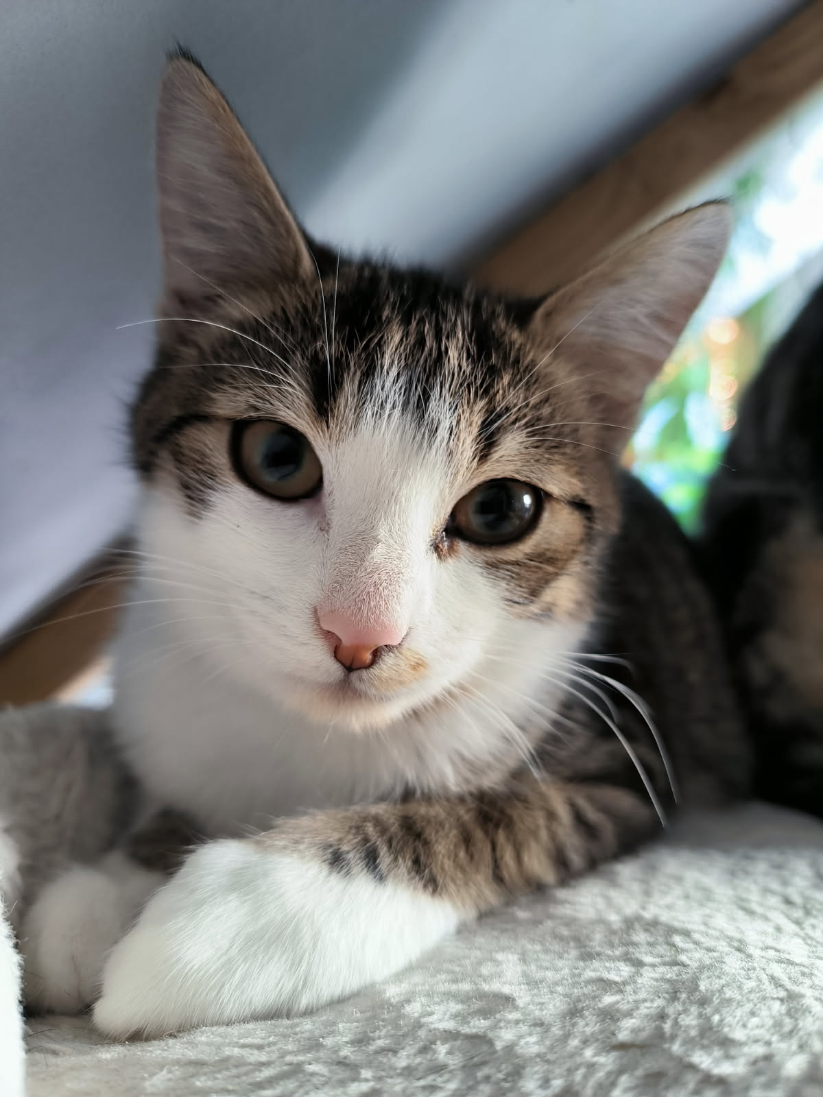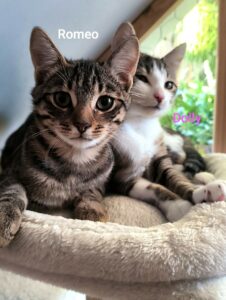 Ce sont deux petits amours de 5 mois, une minette blanche et noire et son frère tigré. Ils doux et calme, adorables et câlins. Ils attendent un bon foyer qui saura les choyer.