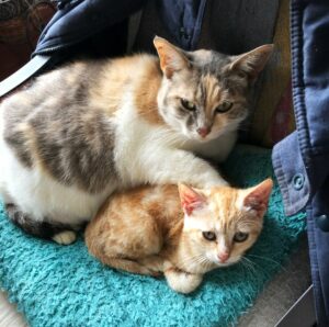 Cajou ( la coquine tigré) et Céleste ( la coquine tricolore) sont deux choupettes de deux mois et demi ( elles sont du 16 juillet). Leur maman abandonnée a trouvé refuge chez des personnes au grand coeur et elles ont pu grandir en sécurité et dans l’amour.