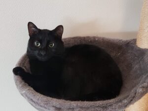 Shadow est un gentil chat de 7 ans aux beaux yeux verts (né 01/09/2018) sociable, accepte la compagnie d’autres chats, très calme, affectueux,câlin.